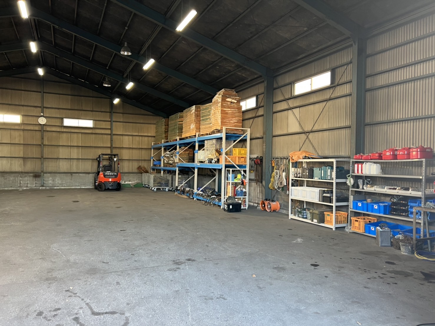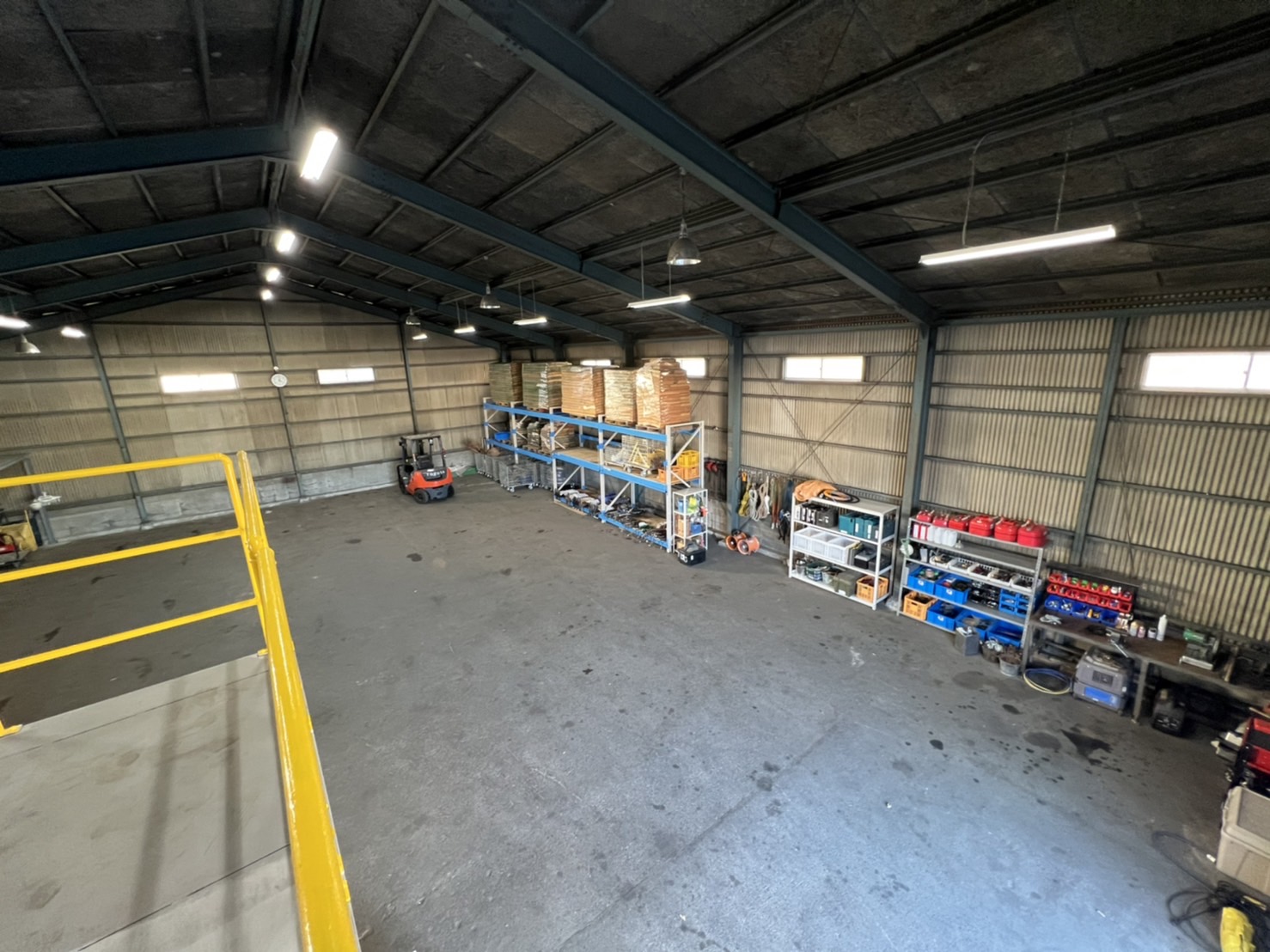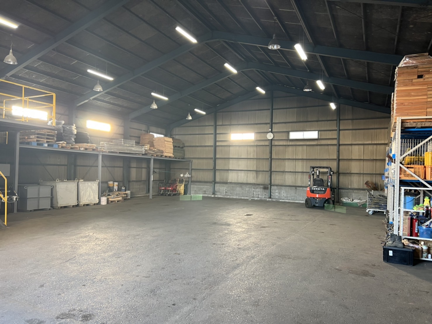 また二階の棚までは、フォークリフトで物を上げることが可能です。